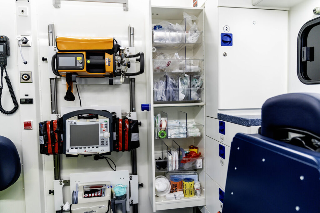 Der RTW Süd ist konsequent auf die Anforderungen des Einsatzpersonals ausgelegt. Anordnung, Arbeitshöhen und Bewegungsflächen im Patientenraum wurden so geplant, dass Arbeitsabläufe intuitiv und körperlich entlastend möglich sind. Kurze Wege, gut erreichbare Bedienelemente und klare Strukturen unterstützen sicheres Arbeiten auch unter Zeitdruck und in belastenden Einsatzsituationen.